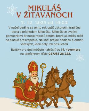 Balíčky pre deti si môžete nahlásiť na obecnom úrade alebo na tel. čísle 037/ 64 26 222 do 14.11.2025.